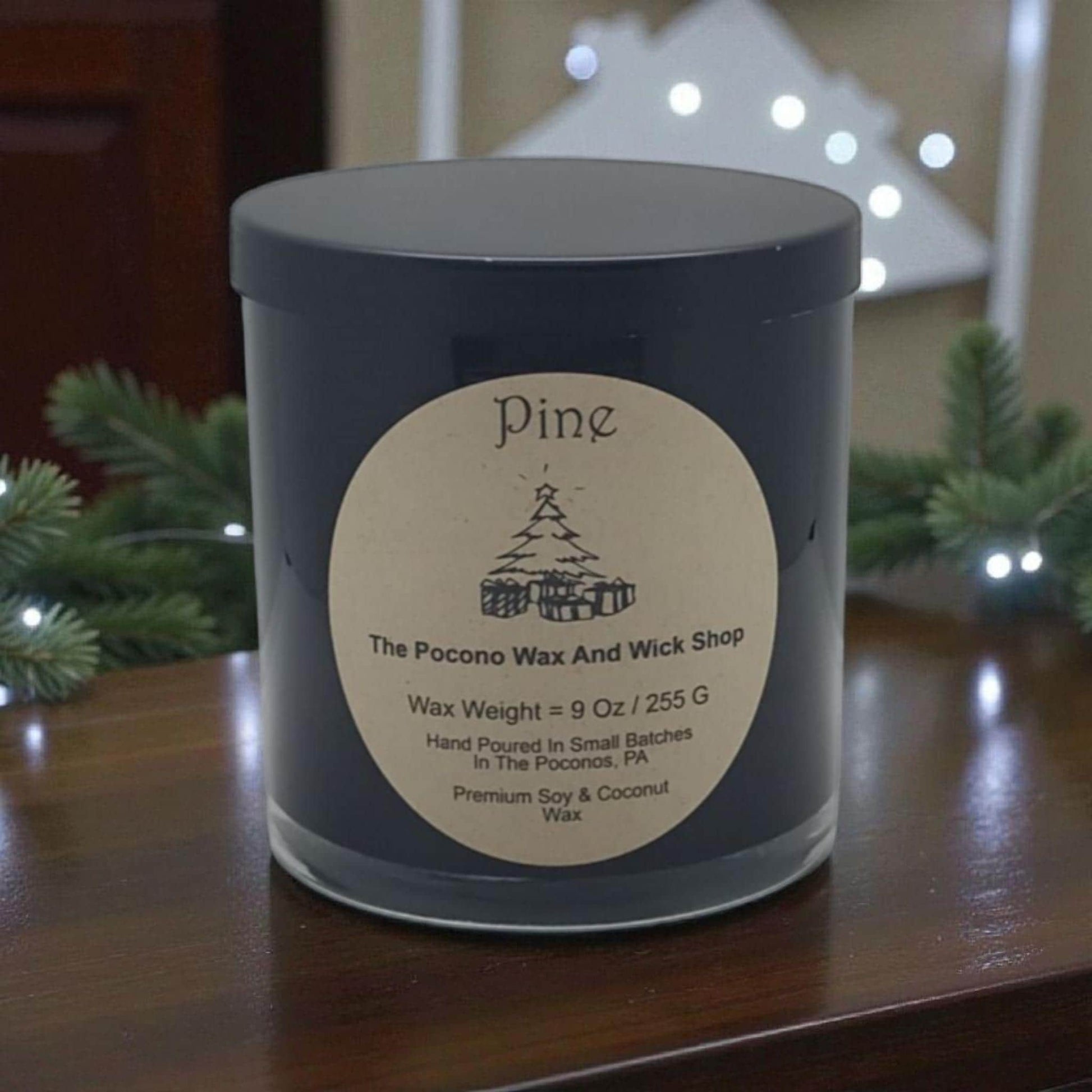 This candle is a Pine scented candle in a Shiny Black Glass Tumbler using premium soy/coconut wax and fragrance oils. This candle has a wax volume of 9 oz by wax weight. All of our glass jars, round tins and wax melts are hand poured in very small batches here in the Poconos, PA using premium soy wax and fragrance oils.