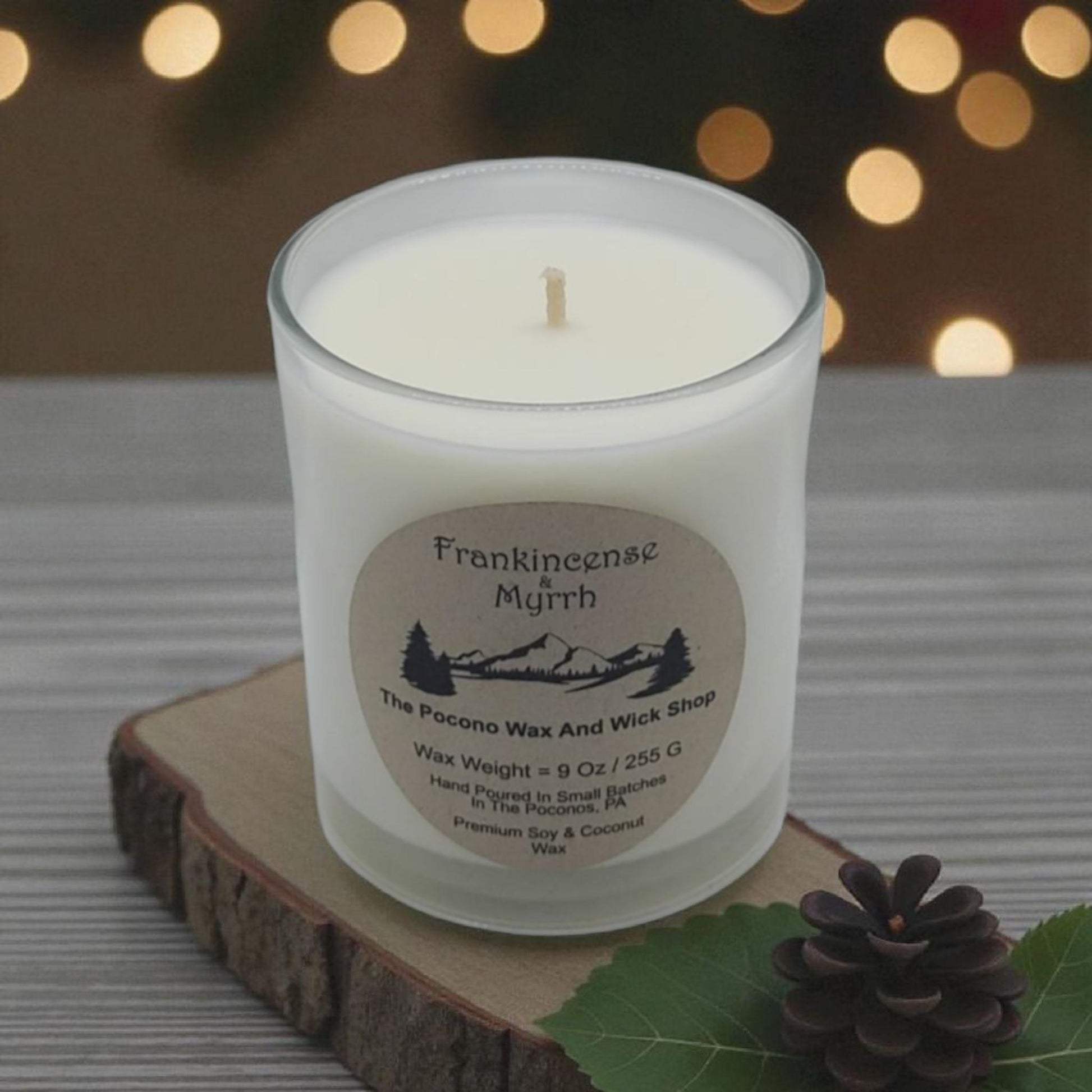 Frankincense And Myrrh scented 9 oz Soy/Coconut candle