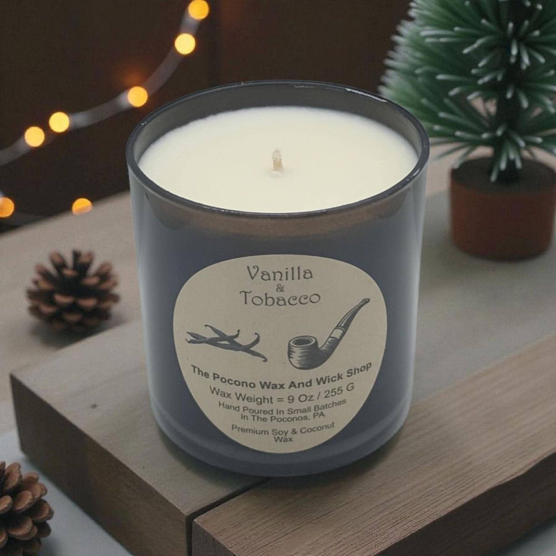 Vanilla Scented Candle, Tobacco, Soy Wax, Coconut Wax, 9 Oz